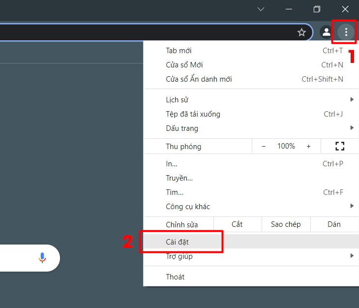 Bước 1: Đi đến trình duyệt web > Chọn vào biểu tượng 3 chấm phía góc phải trình duyệt > Cài đặt (Setting).